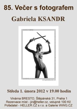 Jiří Heller, organizátor a moderátor besed, si Vás dovoluje na pozvat na 85. Večer s fotografem, jehož hostem bude profesionální fotografka Gabriela Ksandr z Mnichova.